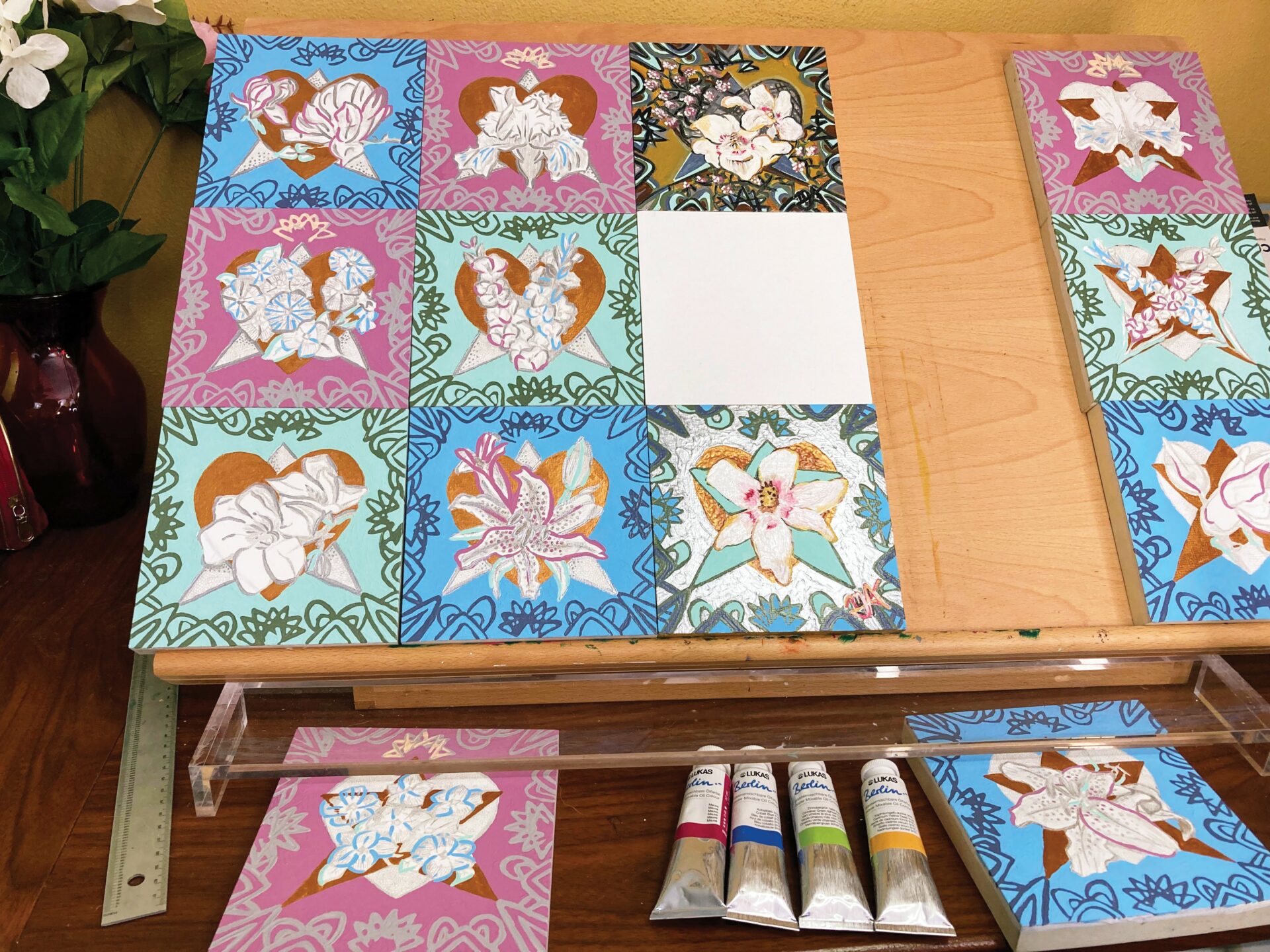I transitioned from feeling embarrassed about currently working in approximately a 64-square-foot space within my bedroom to feeling empowered. As my approach to creativity has evolved beyond traditional norms, I have come to recognize myself as a contemporary artist, conceptual artist, functional artist, 21st-century symbolist/illuminator, and storyteller. This multifaceted identity encompasses roles as an author, illustrator, and designer.